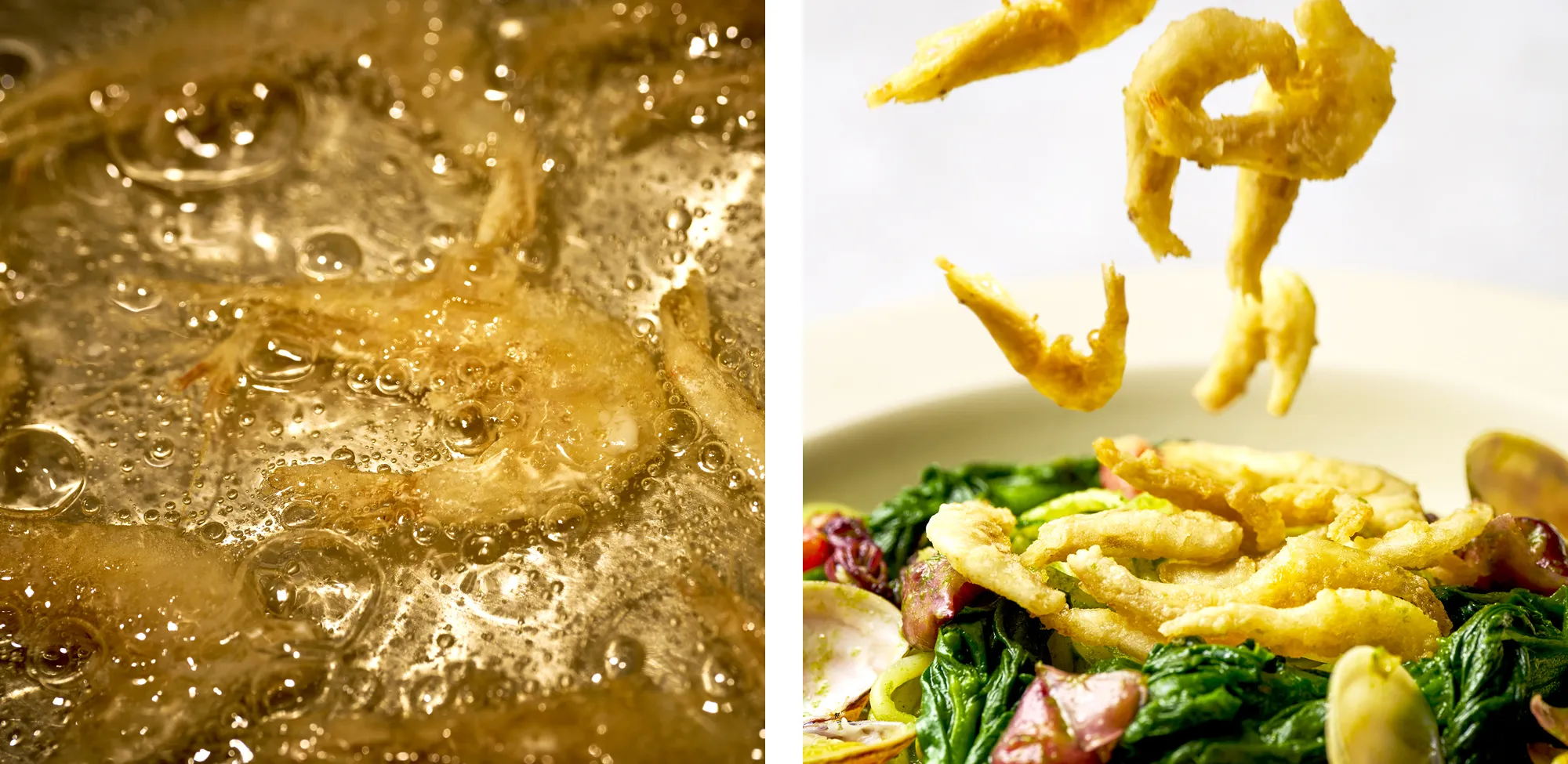 刺身で楽しめる白えびを、注文ごとにフリット。