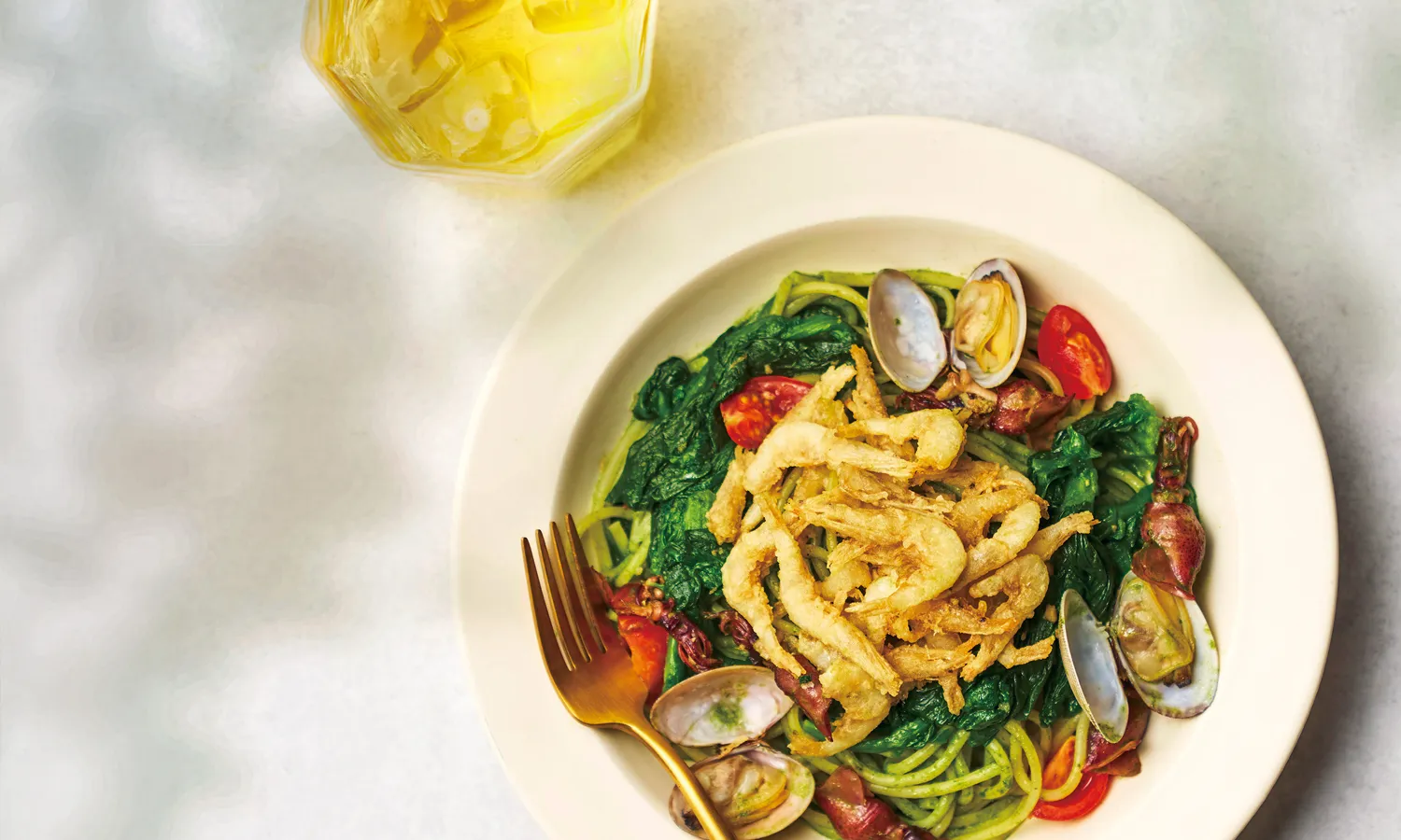 やさしい香りがふわりと広がる、季節感あふれるジェノベーゼ仕立てのソースです。