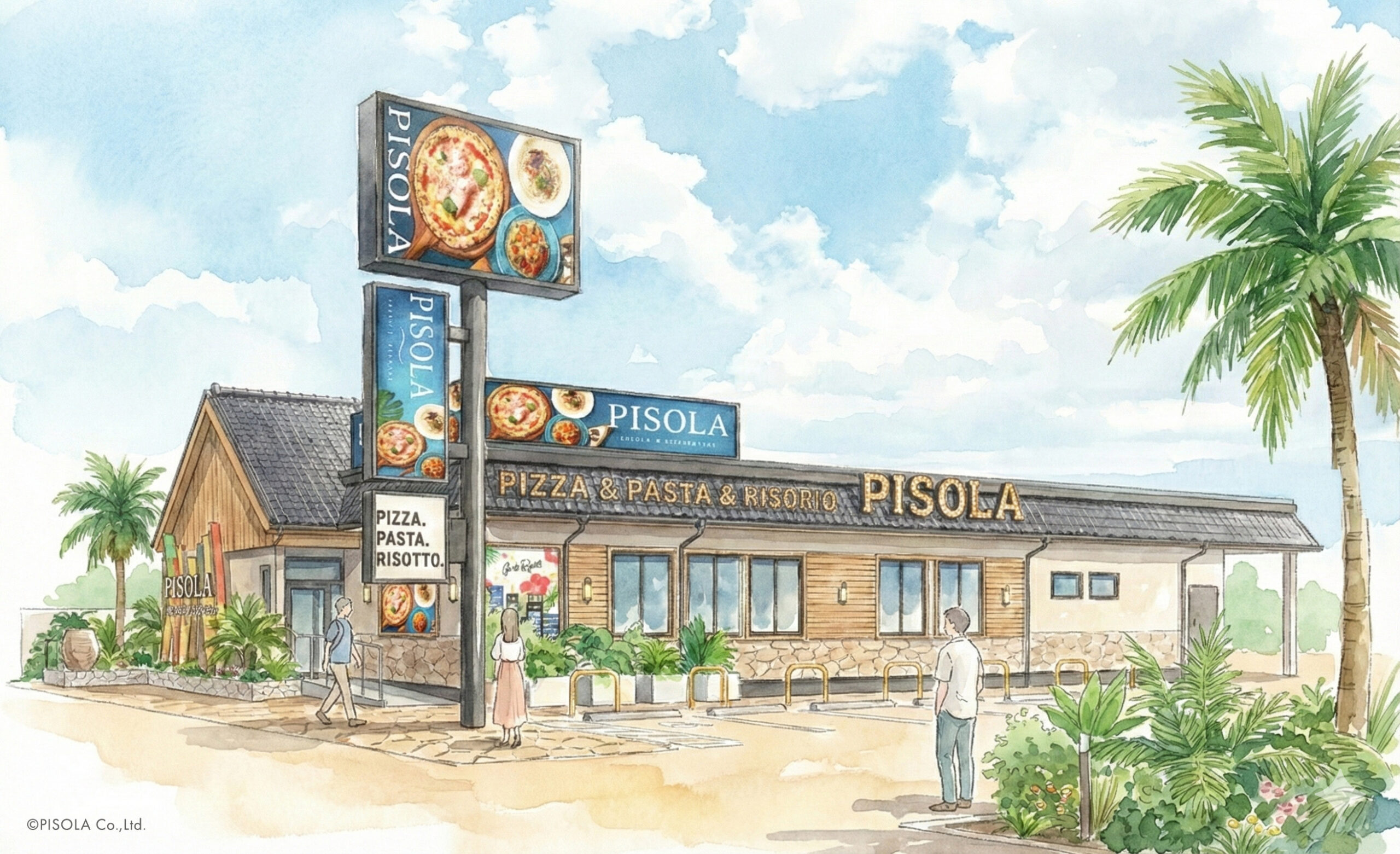 PISOLAは「リゾート気分で、本格イタリアンを」をコンセプトに郊外ロードサイドに展開するクラフトレストランです。