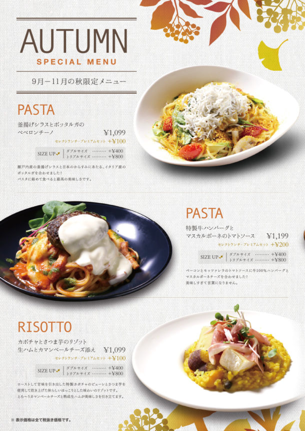 2019年9月1日より秋のおすすめメニュー販売開始です!