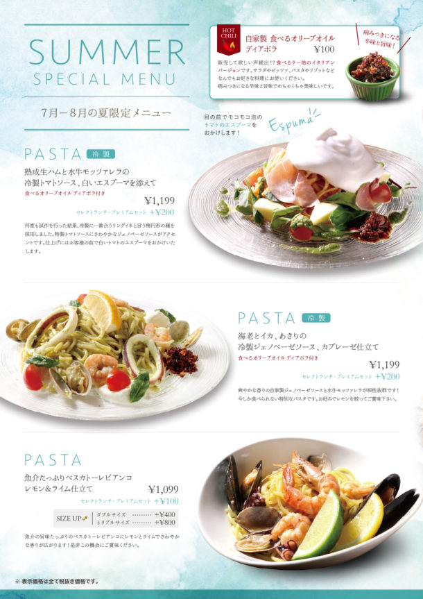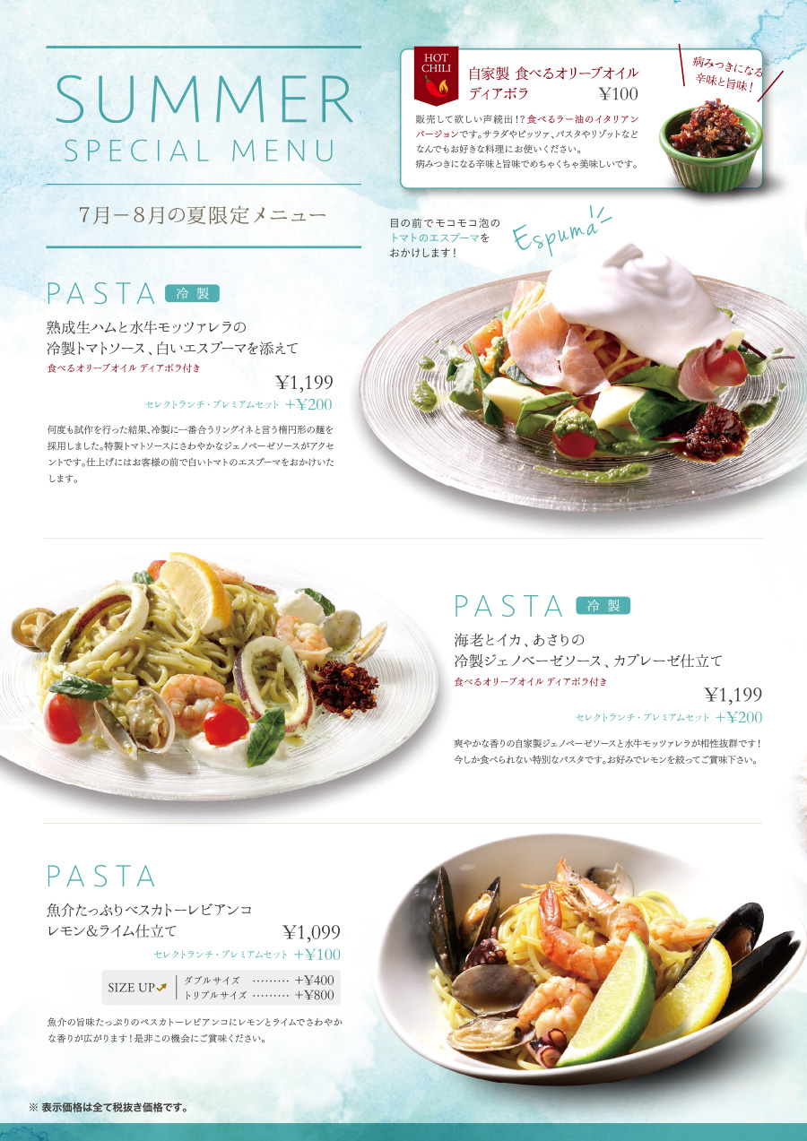 2020年7月1日より夏のおすすめメニュー販売開始です!