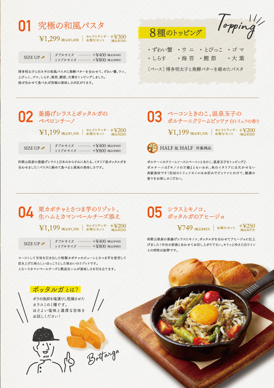 PISOLAのパスタ・リゾット・ピッツァは化学調味料・保存料無添加でお店でイチから仕込む本格派です。